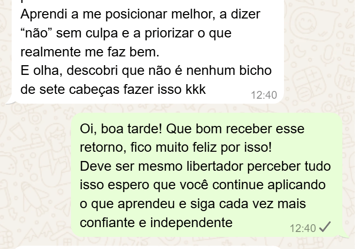 Ele te ajuda a entender a origem dos seus pensamentos e comportamentos destrutivos, como a insegurança, o medo de desagradar ou de ficar só, e mostra como reprogramar sua mente de forma simples e leve.